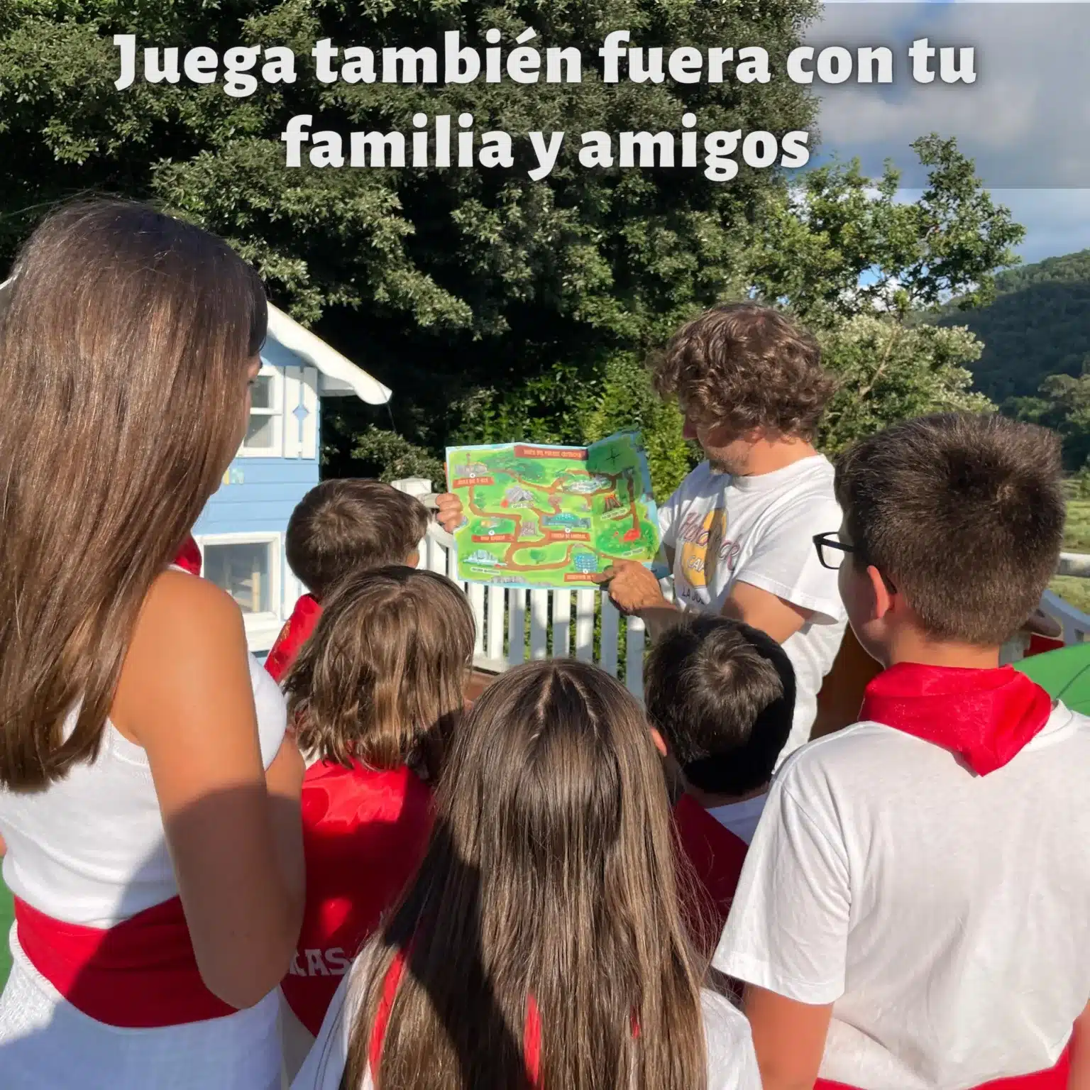 Sí, puedes jugar también en el EXTERIOR como el jardín, bosque, camping, casa rural o en un parque cercano