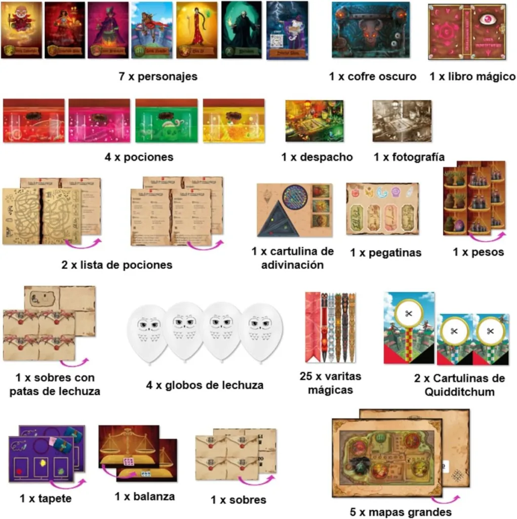 - Elementos montables inmersivos: grandes mapas, pócimas, bolas de cristal, lechuzas…